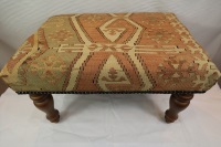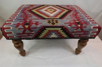 Kilim Furniture can be made to order according to the requirement of the client. They can choose the rugs from the hundreds of varieties with which to upholster the stools. As each piece of kilim is unique both in the sense of colour combinations and the designs woven into it, you can rest assured that the Kilim Footstools would be a prized possession among your Kilim Tables lending elegance and style.
